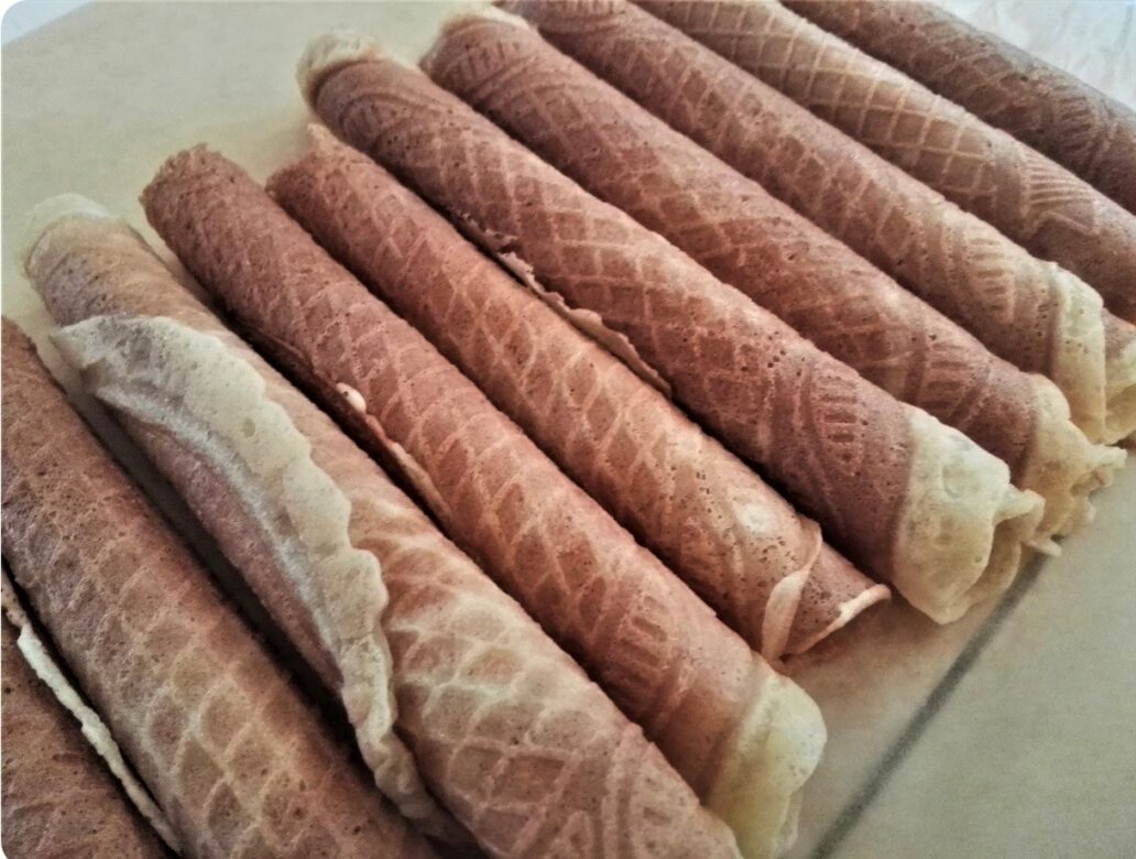 - Voor kniepertjes: laat de wafel plat afkoelen.