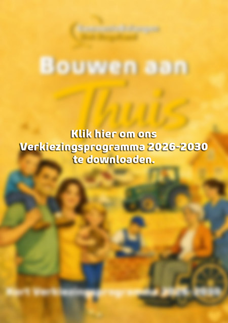 In dit programma staan onze keuzes helder op een rij. Over betaalbaar wonen in alle kernen, prachtdorpen, rondkomen, sterke verenigingen, kansen voor jongeren, ruimte voor landbouw en visserij, en een gemeente die nuchter en betrouwbaar bestuur levert.